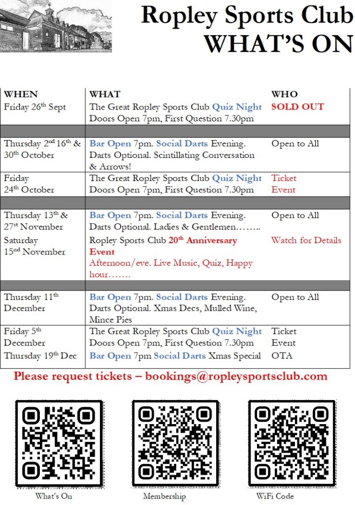 Do you have a Ropley event or news item you’d like to publish? Just email us at editors@myropley.org.uk with the details.
