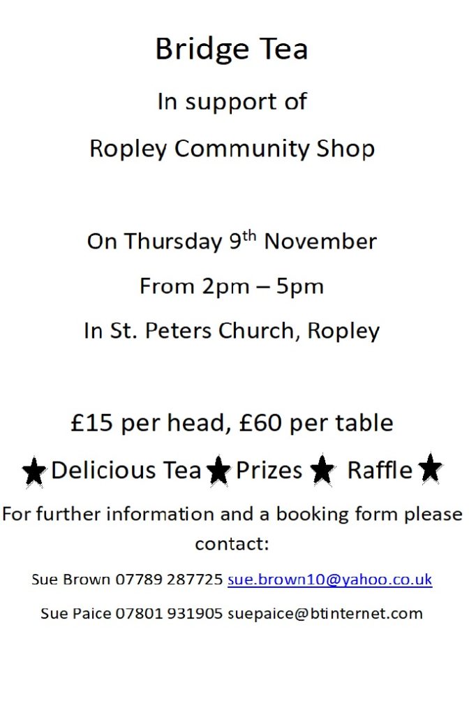 We’re having a Bridge Tea to raise funds to help support The Courtyard, your community village shop.