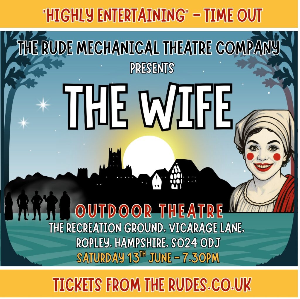 It’s spring on the road to Canterbury. Alyson of Bath, cloth-maker, widow, pilgrim, and five-times-married expert in the arts of love, has plenty to say and no intention of holding her tongue. As hooves clip-clop and birdsong bubbles, she tells of husbands rich and foolish, charming and cruel, and the hard bargains of love. Then comes her tale of a young knight, a terrible crime, and a question that sends him wandering the world in search of an answer no one can agree on. A hilarious and beautiful poetic romp of word, wit and song, the play bristles with provocation and, just maybe, whispers a hard-won truth about love, power, and what women most desire. The Wife is The Rude Mechanical Theatre Company’s original musical play inspired by Chaucer’s Wife of Bath. Bursting with live music, poetry and physical comedy, this outdoor production is by turns hilarious, provocative and tender. Touring towns and villages across southern England this summer.