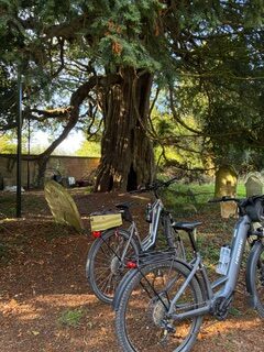 The e-bike cycling group started with one idea, became two people, increased to three and now with a fourth looking to join in the New Year. Since the 11th September we have enjoyed five rides with destinations such as Chilton Candover, East Meon, Lasham, Cheriton and Tichborne, stopping for coffees at The Yard, Avenue Nursery, Josie’s, Long Barn, and my house! We’ve been lucky with the weather, only having to wrap up recently – but you soon get warm when you get those pedals turning!